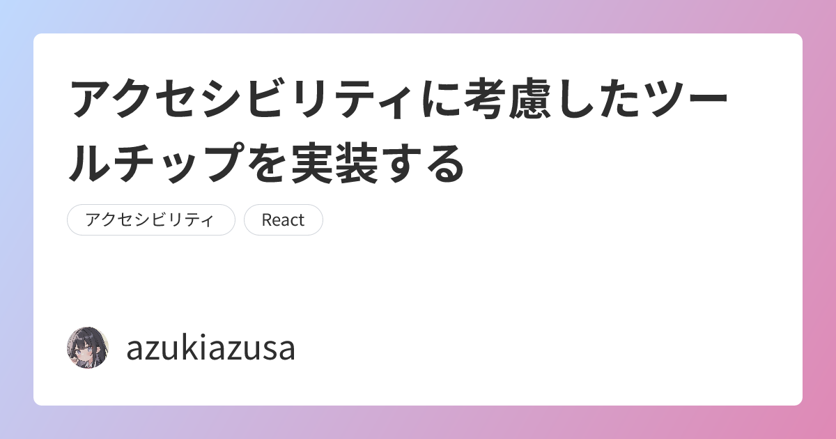 ツールチップをアクセシブルにするためには、以下の実装をする必要があります。