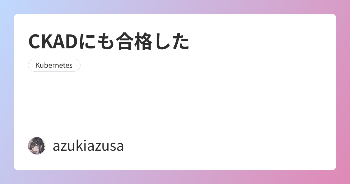 前回CKAを受験して合格した記事を Zenn に書きました。