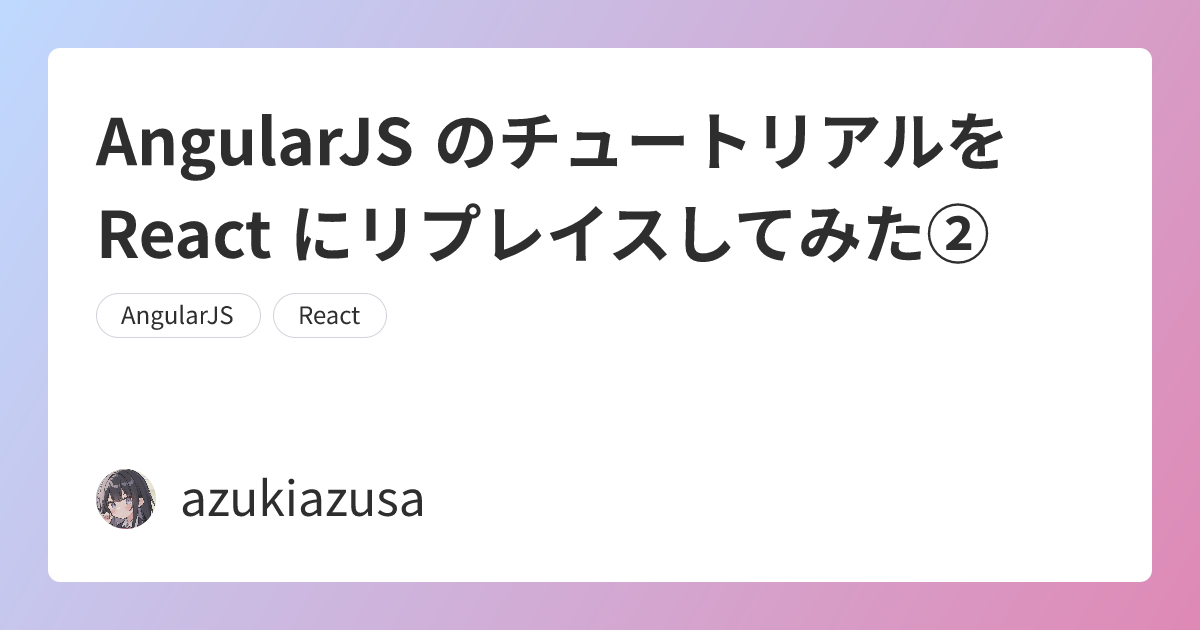 AngularJS のチュートリアルを React にリプレイスします。今回の記事では AngularJS のコンポーネントをすべてリプレイスして、angular-resorce の代わりに API クライアントを実装します。
