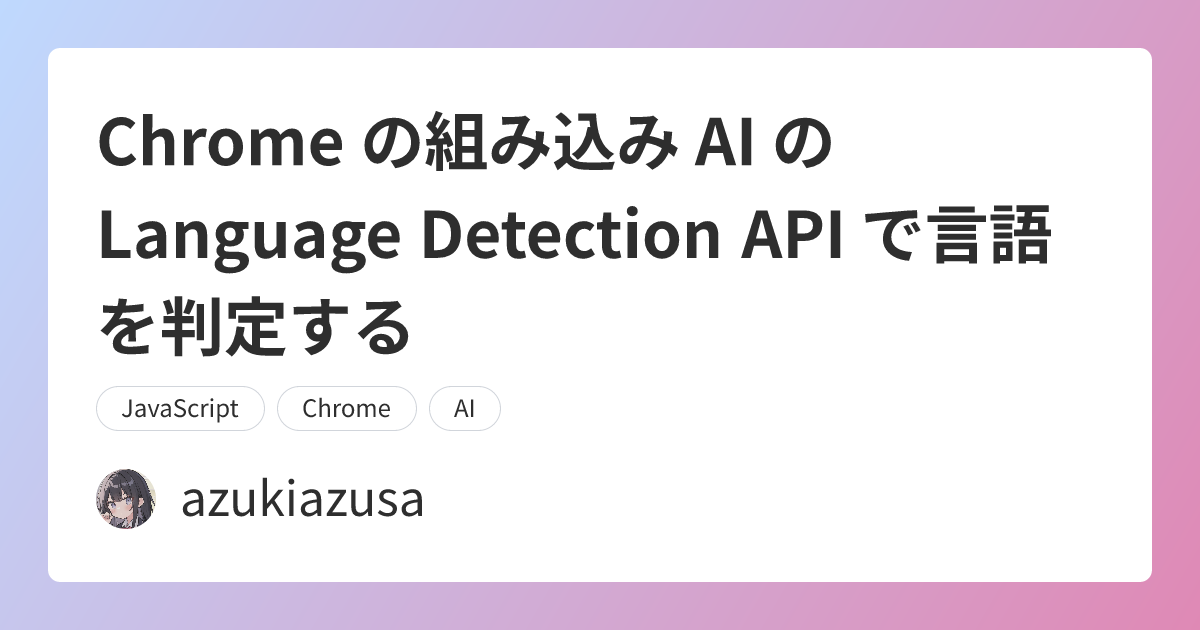 Language Detection API は Chrome に組み込まれた AI により、クライアントサイドで言語を判定するための提案です。この API を利用することで、テキストの言語を判定することが可能になります。