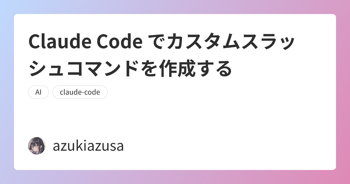 Claude Code では `/` で始まる文字列がスラッシュコマンドとして定義されておりあらかじめ割り当てられた操作を実行できます。スラッシュコマンドはユーザーが独自に定義することもできます。この記事では、Claude Code でカスタムスラッシュコマンドを作成する方法について説明します。