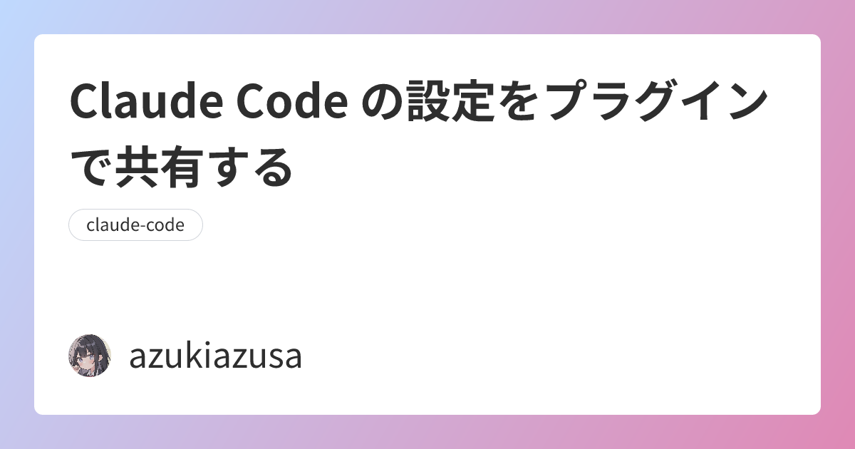 プラグインは Claude Code の設定を共有するための仕組みとして作成されました。プラグインは Claude Code の設定をパッケージ化し、他のユーザーが簡単にインストールして利用できるようにします。この記事では、Claude Code のプラグインの作成方法、他者が作成したプラグインのインストール方法などを紹介します。