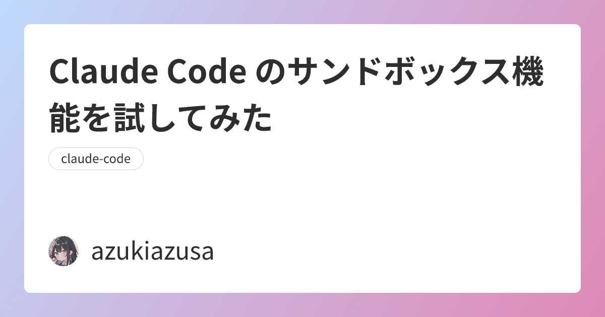 この記事では、Claude Code のサンドボックス機能の仕組みと利用方法について解説します。