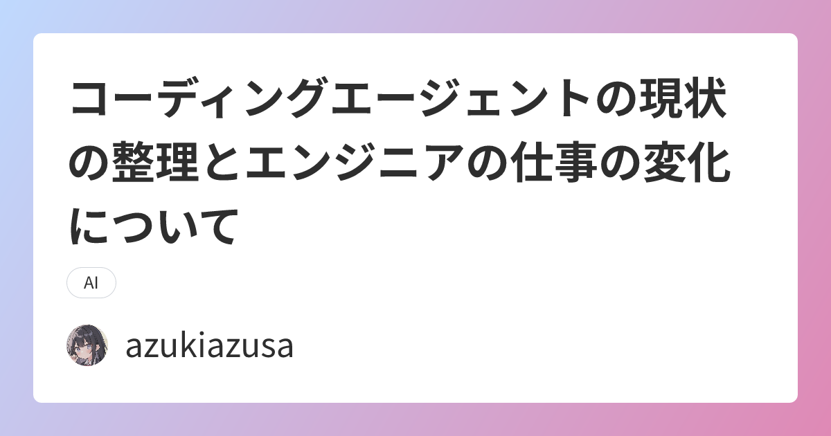 コーディングエージェントの現状の整理とエンジニアの仕事の変化について