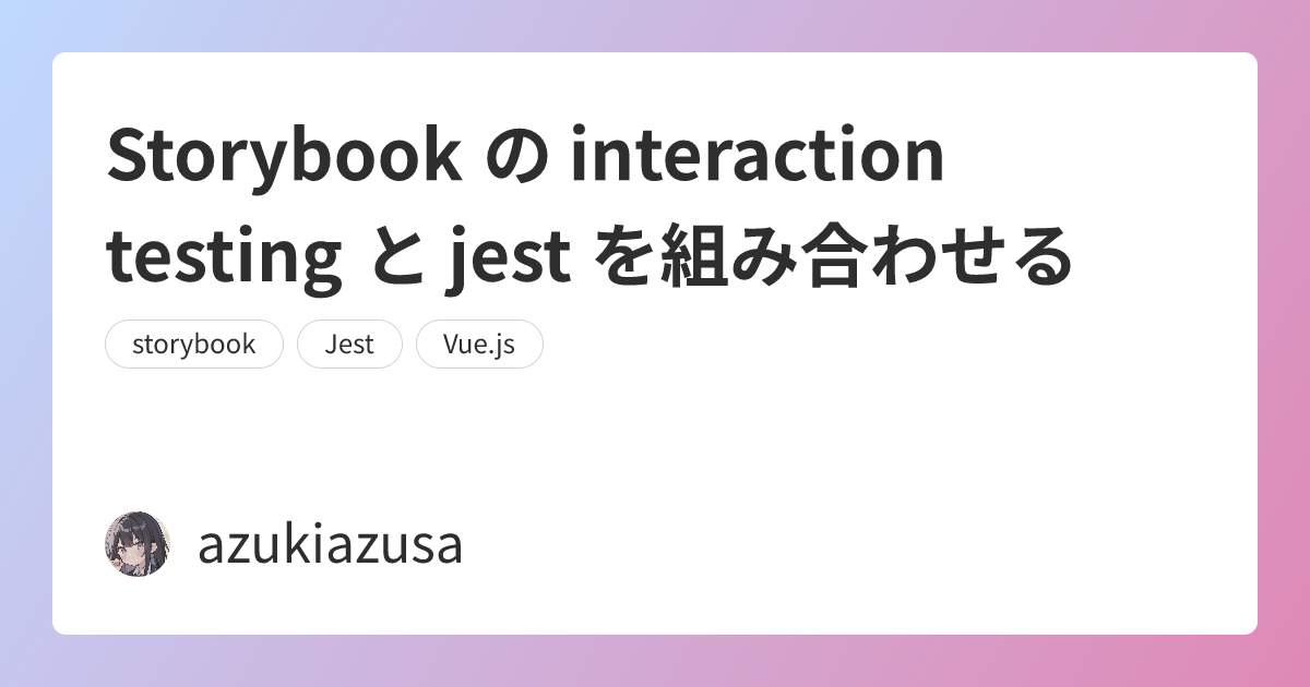 Storybook 上でインタラクションを確認するのは人間による目視によるものですので Jest と組み合わせて自動でインタラクションをテストできるようにします。