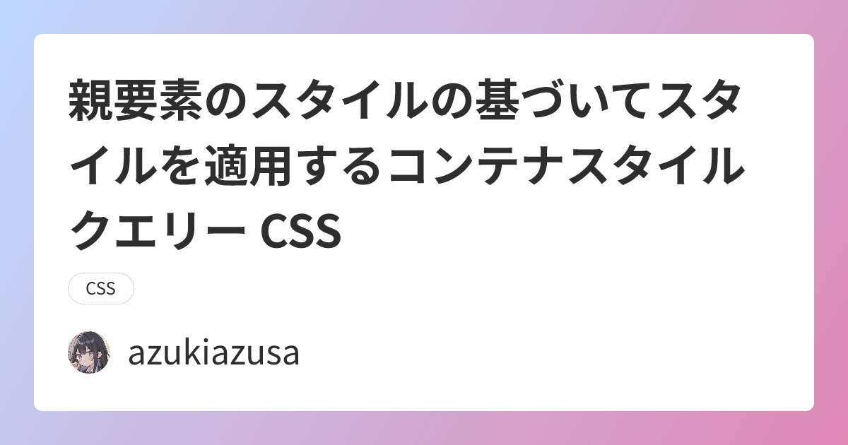 CSS の @container ルールは、コンテナ(親要素)の特性に基づいてスタイルを適用するためのルールです。コンテナースタイルクエリーはコンテナサイズクエリーとコンテナスタイルクエリーの 2 種類に分類されます。コンテナスタイルクエリは style() 関数記法で定義されたスタイルを @container ルールで評価し、指定された条件が一致する場合にスタイルが適用されます。