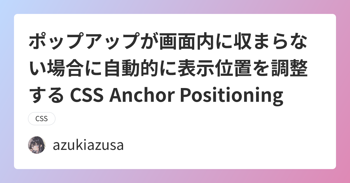ポップアップが画面内に収まらない場合に自動的に表示位置を調整する CSS Anchor Positioning