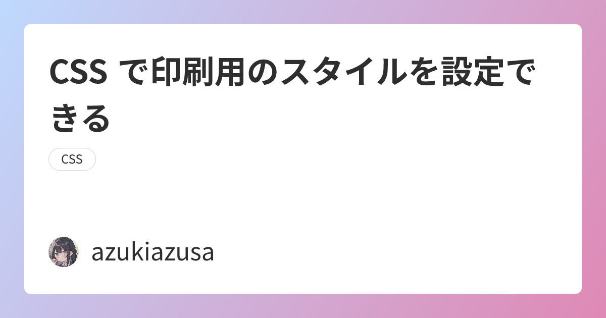 大抵のブラウザでは Web ページを印刷することができます。 しかし Web ページをそのまま印刷しようとすると改ページがおかしくなったりレイアウトがおかしくなってしまうことがあるでしょう。そもそも Web ページはディスプレイで表示することを目的としているので印刷には不向きなものです。 とはいえ Web ページを印刷したいというニーズは少なからずあるとは思います、そのようば場合には `@media print` などのような印刷用の CSS を利用することで見た目を整えることができます