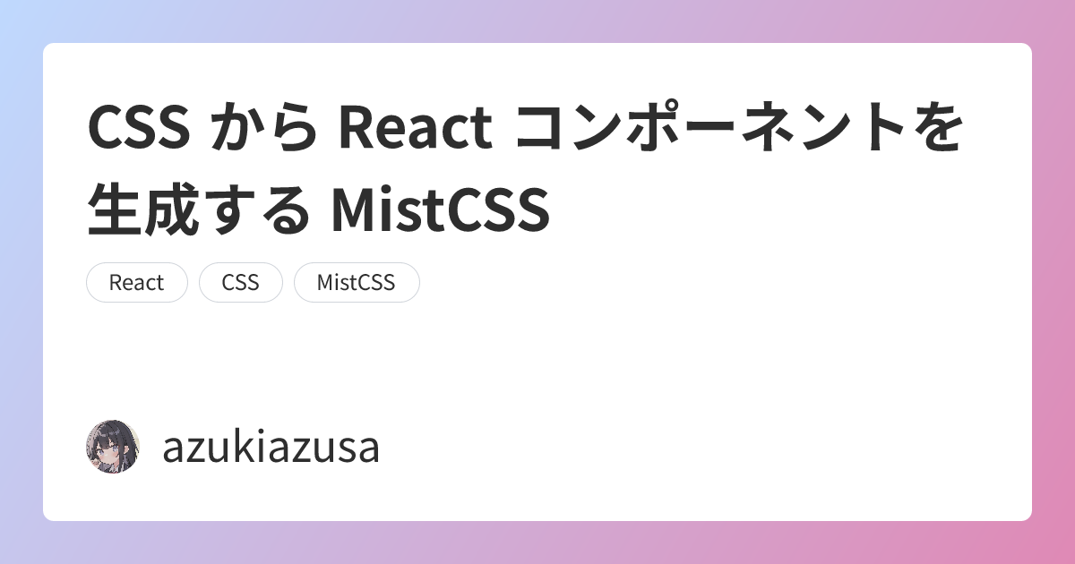 CSS の手法に新たな選択肢が加わりました。それが MistCSS です。MistCSS は CSS in JS になぞらえた JS from CSS というコンセプトで、CSS から React コンポーネントを生成するツールです。