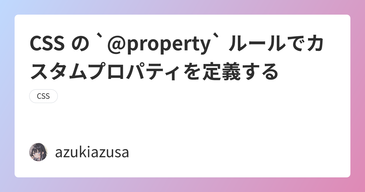 CSS の @property ルールを使うことで、CSS のカスタムプロパティ を定義できます。カスタムプロパティを定義することでプロパティの構文チェック、初期値の設定、プロパティが値を継承するかどうかの設定が可能になります。