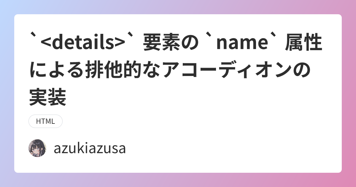 <details> 要素の name 属性を利用した排他的アコーディオンの実装