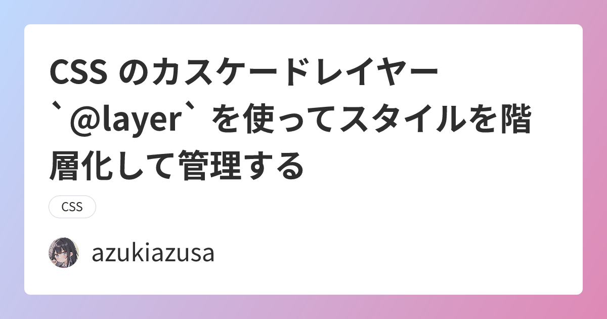 CSS のカスケードレイヤー `@layer` を使ってスタイルを階層化して管理する