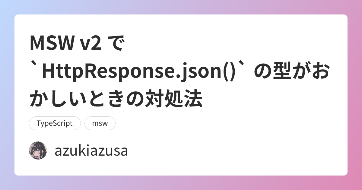 MSW v2 で `HttpResponse.json()` の型がおかしいときの対処法
