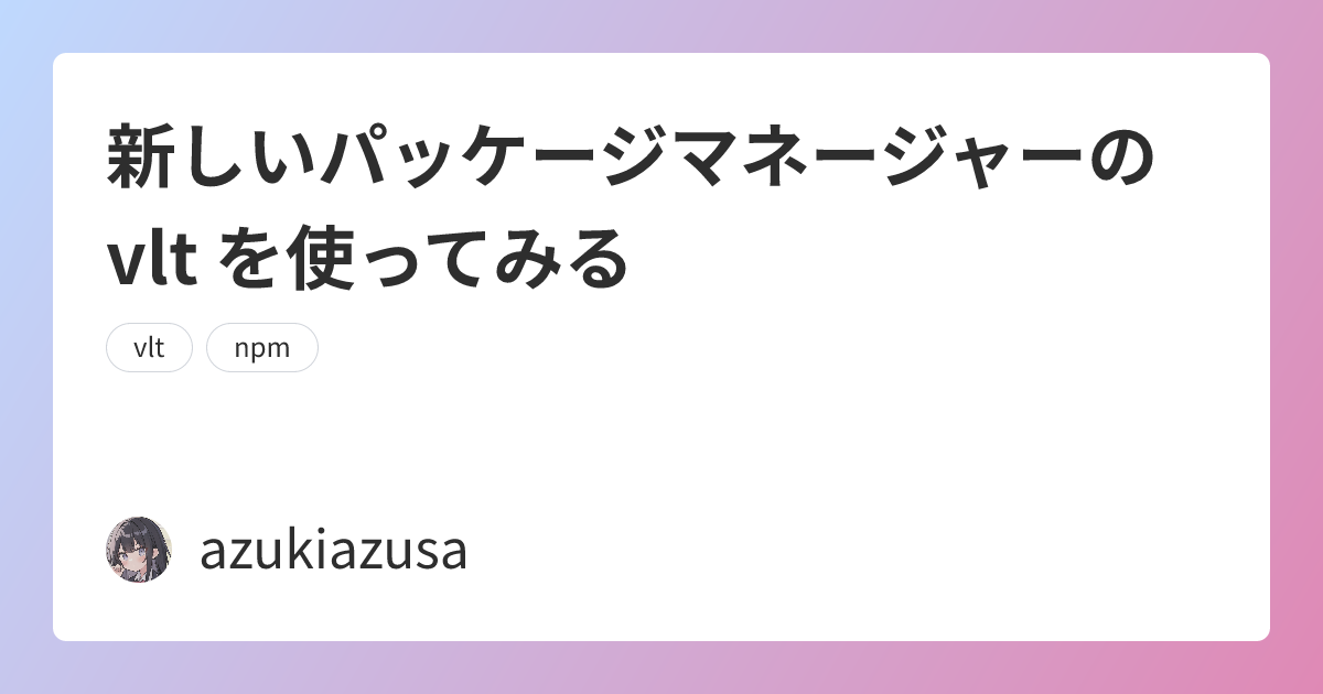 この記事ではクライアント側の vlt について紹介します。vlt は npm vsr を使用せずに npm registry からパッケージをインストールできます。