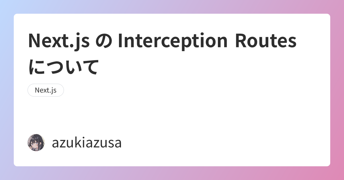 Intercepting routes は Next.js 13.3 から追加された機能で、App Router(app ディレクトリ)において使用できます。Intercepting routes ではブラウザの URL を遷移先のものに上書きしつつ、現在のレイアウトに新しいページを表示できます。これは例えば Instagram のように、ユーザーのプロフィールから写真をクリックすると、写真をモーダルを開き、ページを更新したり共通したりするとデフォルトのレイアウトで表示する場合などに便利です。