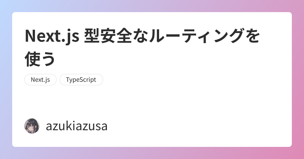 Next.js では実験的な機能として、型安全なルーティングを利用できます。この機能を使うことでリンク先のパス名を静的に検査できるため、typo などのエラーを事前に防ぐことができます。