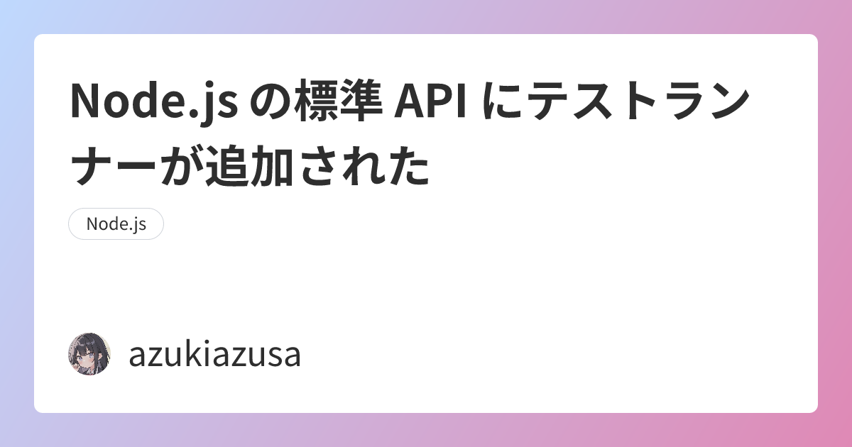 そんな中、Node.js 18 から標準 API としてテストランナーが組み込まれました。まだ実験的な機能ではありますが、サードパーティのライブラリを使用せずに扱えることもあって注目を集めています。