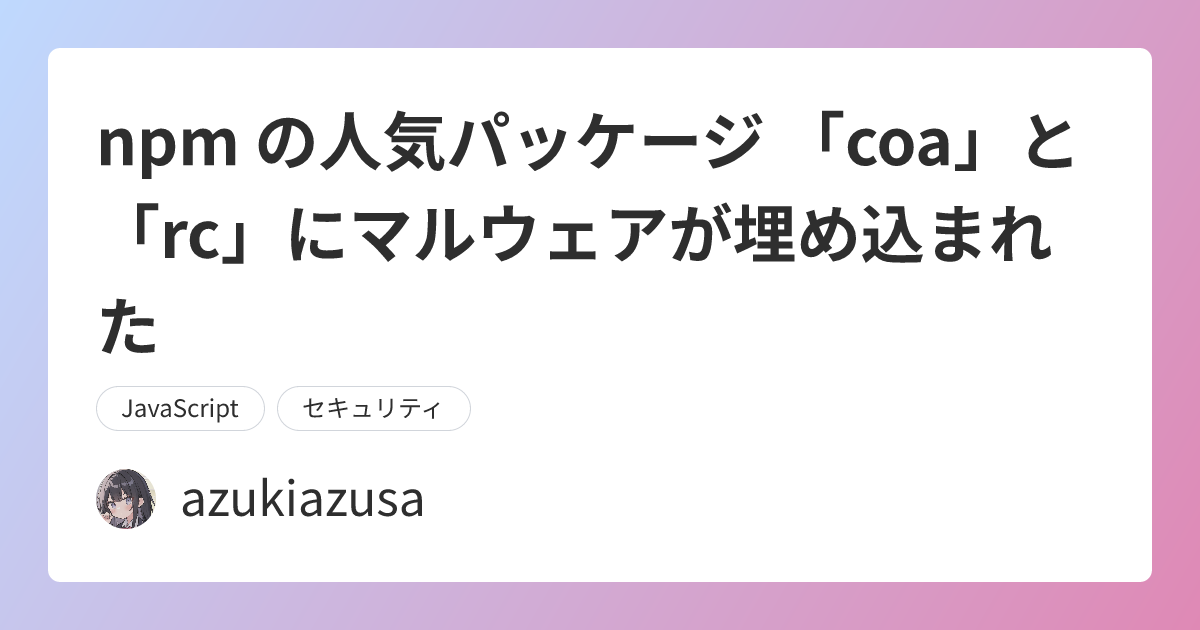 npm の人気パッケージ 「coa」と「rc」にマルウェアが埋め込まれた