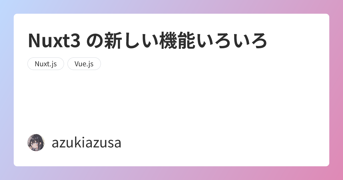 現在 Nuxt.js はバージョン 3 がパブリックベータ版として提供されています。 Nuxt.js が 2 → 3 に移行するにあたってたくさんの新機能が追加されました。