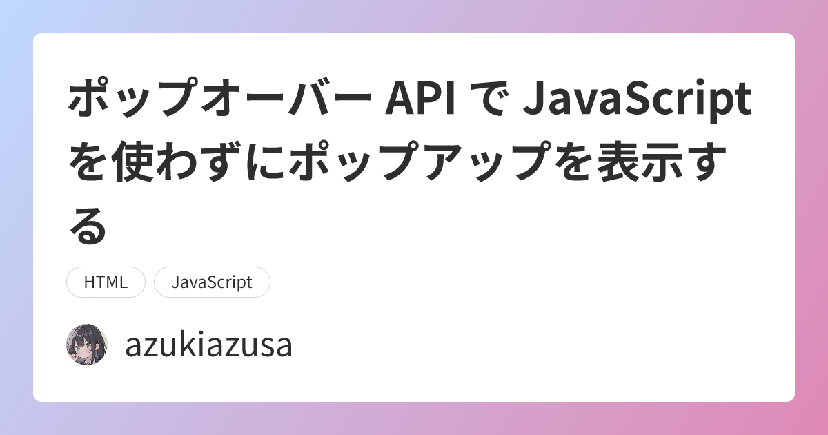 Chrome 114 から追加されたポップオーバー API を使うと、JavaScript を使わずに簡単にポップアップを表示することができます。