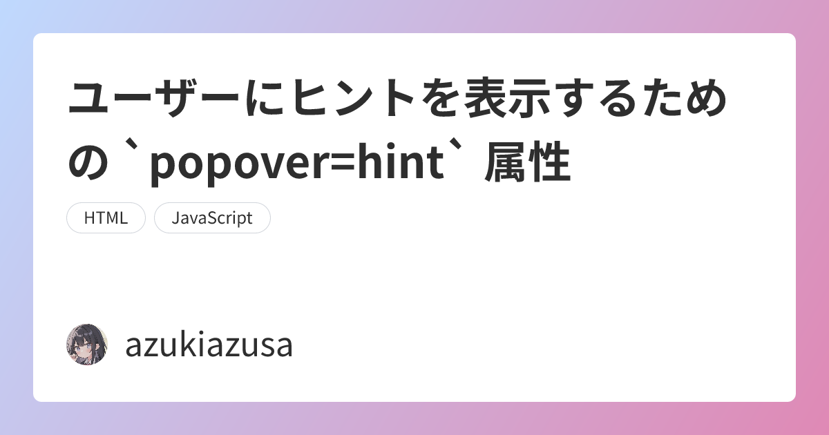 ユーザーにヒントを表示するための `popover=hint` 属性