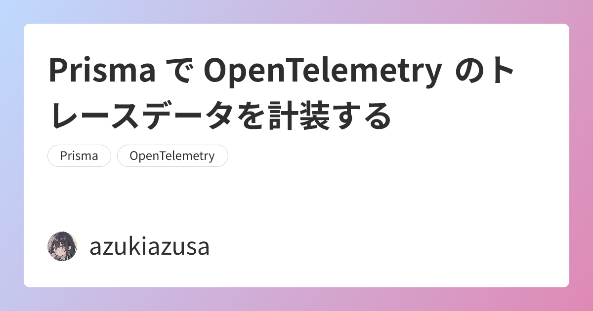 Prisma は OpenTelemetry の仕様に準拠したトレースデータを計装するためのパッケージを提供しています。この記事では、Prisma で OpenTelemetry のトレースデータを計装する方法について紹介します。