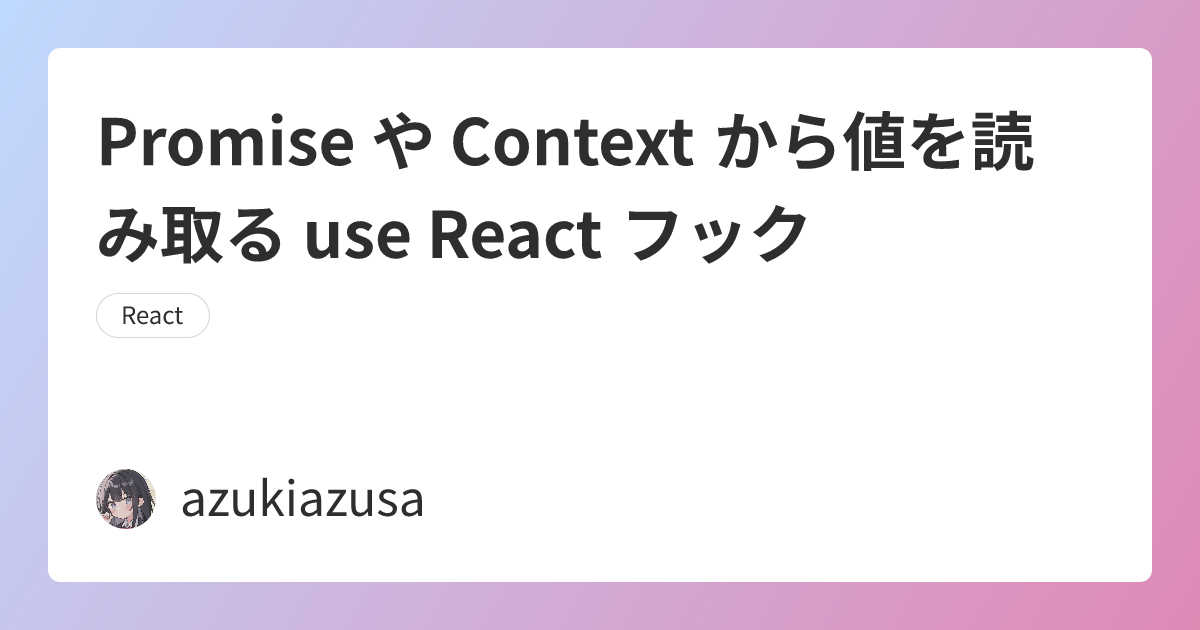 use は、Promise や Context から値を読み取るための React フックです。以下のコードのように Promise の値を同期的に読み取ることができます。