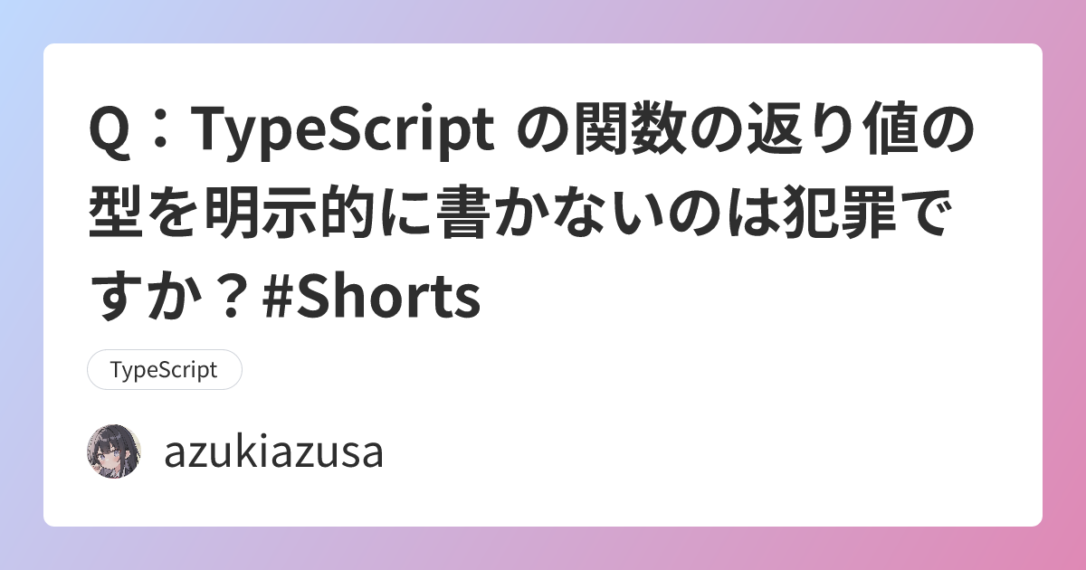 Q:TypeScript の関数の返り値の型を明示的に書かないのは犯罪ですか?#Shorts