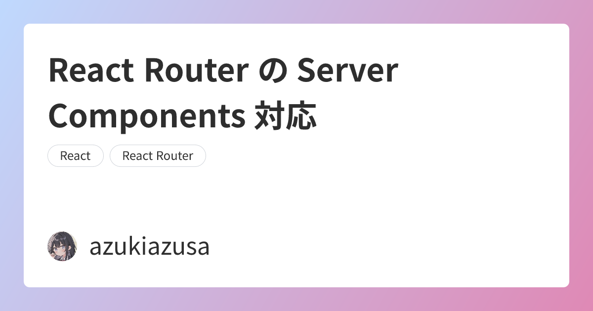React Router はプレビュー版として Server Components に対応しました。これにより loader や actions を使用してデータを返す際にコンポーネント渡したり、Server Components ファーストのサーバーコンポーネントルートを作成できるようになりました。この記事では React Router の Server Components 対応を実際に試してみます。