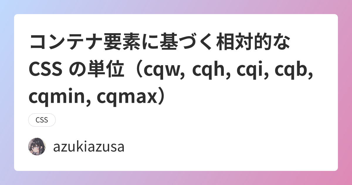 コンテナ要素に基づく相対的な CSS の単位(cqw, cqh, cqi, cqb, cqmin, cqmax)