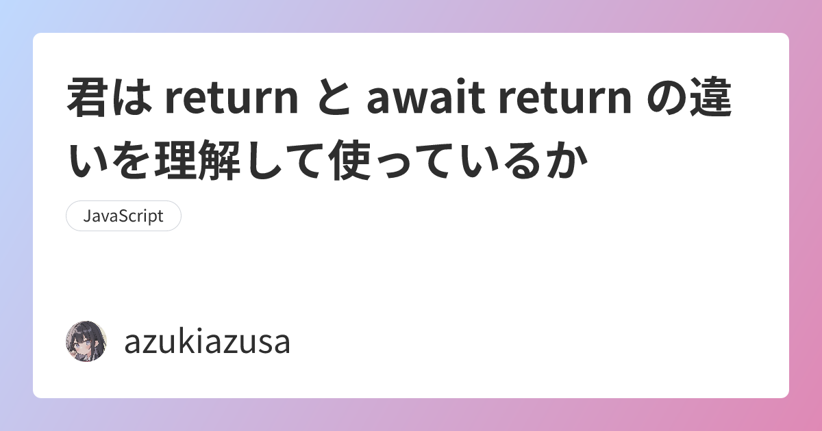 `Promise` を返す非同期関数を扱う時 `Promise` をそのまま返す書き方と `Promise` を `await` してから返す二通りの方法があります。これらは一見同じように動作するように見えますが異なる点が存在します。