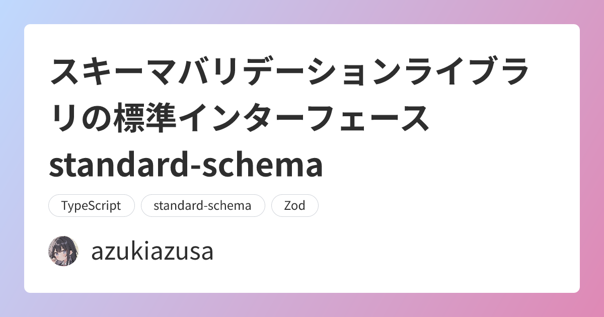 スキーマバリデーションライブラリはここ数年で人気を集めています。多くのライブラリが登場する中で、standard-schema はスキーマバリデーションライブラリの標準インターフェースを提供します。これにより、エコシステムツールがユーザー定義の型検証ツールをより簡単に受け入れられるようにすることを目指しています。