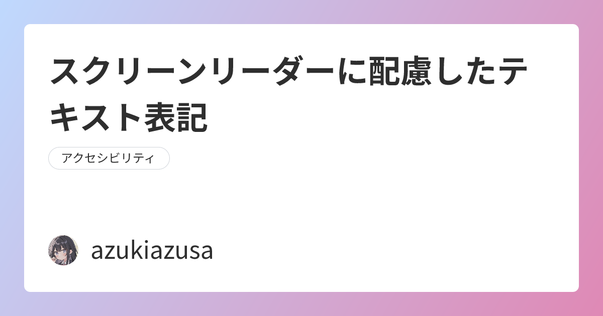 この記事では、以下の内容について正しくスクリーンリーダーに読み上げさせるためのテキスト表記について説明します。