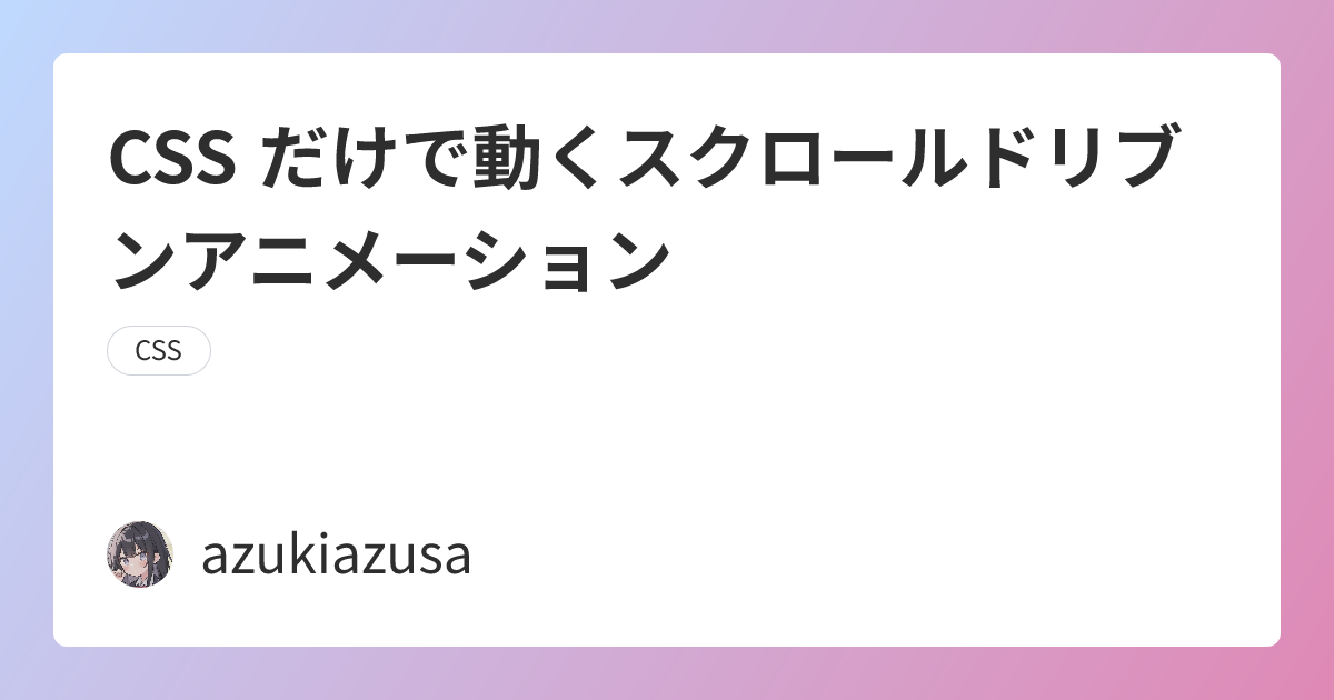 Google Chrome 115 で追加されたスクロールドリブンアニメーションを使うことで、今まで JavaScript を使わなれけば実装できなかったようなスクロールと連動するアニメーションを CSS だけで実装できるようになりました。