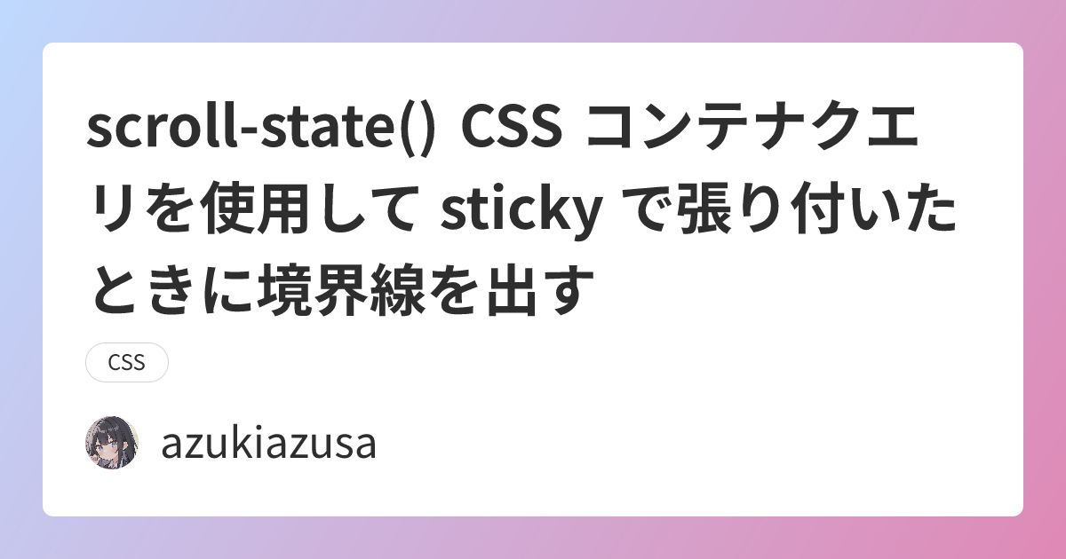 scroll-state() CSS コンテナクエリを使用して sticky で張り付いたときに境界線を出す