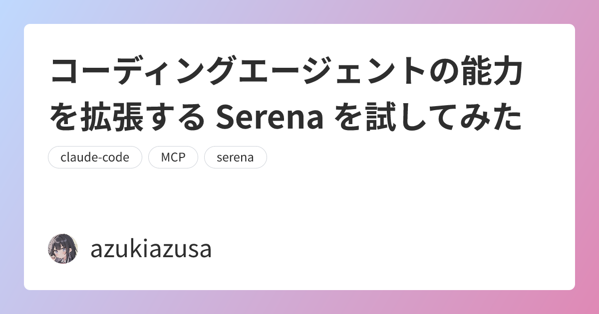 LSP を活用してセマンティックなコード検索・編集能力を提供する MCP サーバー Serena の導入・使用方法を紹介。Claude Code でのオンボーディングからリファクタリングまでの実践的な活用例を解説します。