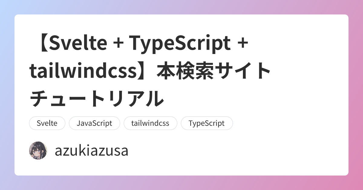 この記事では Svelte + TypeScript + tailwindcss で本検索サイトを作成します。