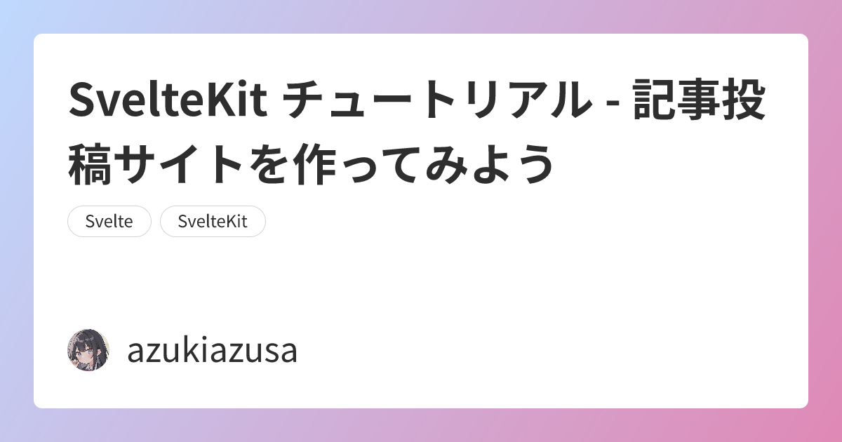 SvelteKit は Svelte と Vite で構築たフレームワークです。SvelteKit は Web アプリケーションを開発するために必要な機能を提供します。この記事では、SvelteKit を使用して記事投稿サイトを作成するチュートリアルを紹介します。記事投稿サイトは、記事の一覧表示、記事の詳細表示、記事の投稿、記事の削除の機能を持つシンプルな Web アプリケーションです。