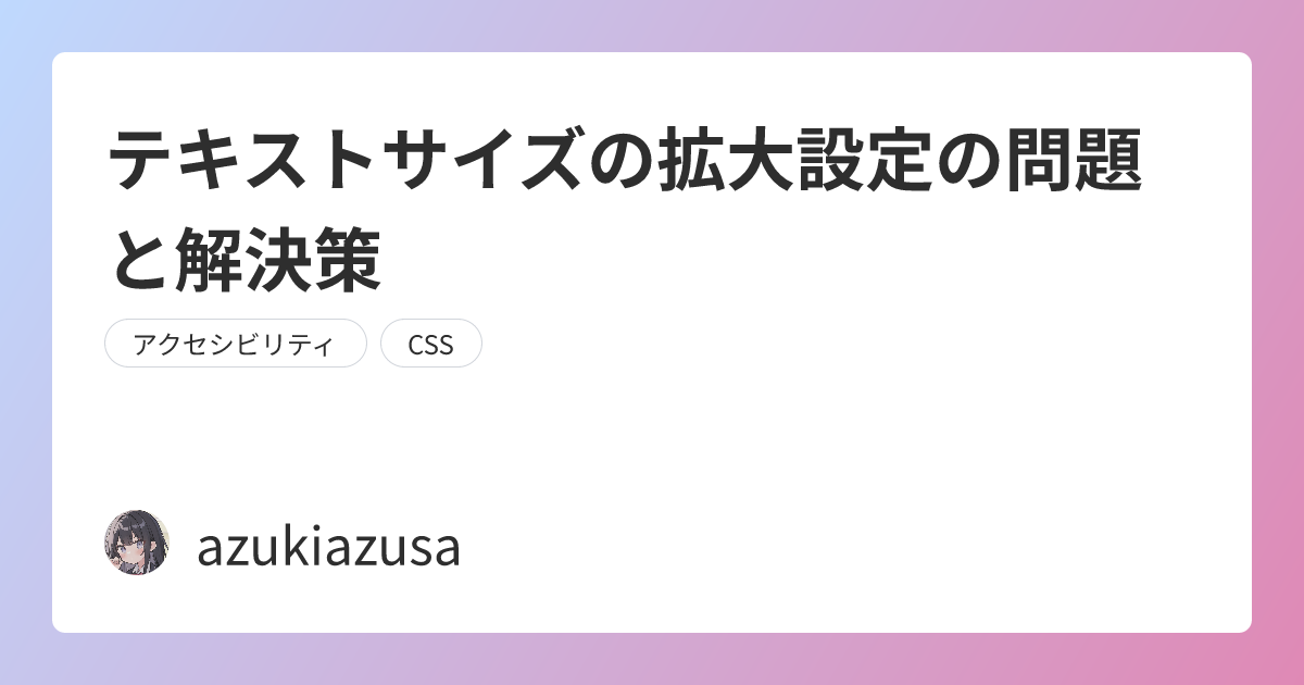 env(preferred-text-scale)を使用する方法がある。env(preferred-text-scale)はユーザーのテキストサイズの設定に基づいて拡大率を返す環境変数で、これを使用することでユーザーのテキストサイズの設定に応じてフォントサイズを拡大できる - より簡単なアプローチとしては、