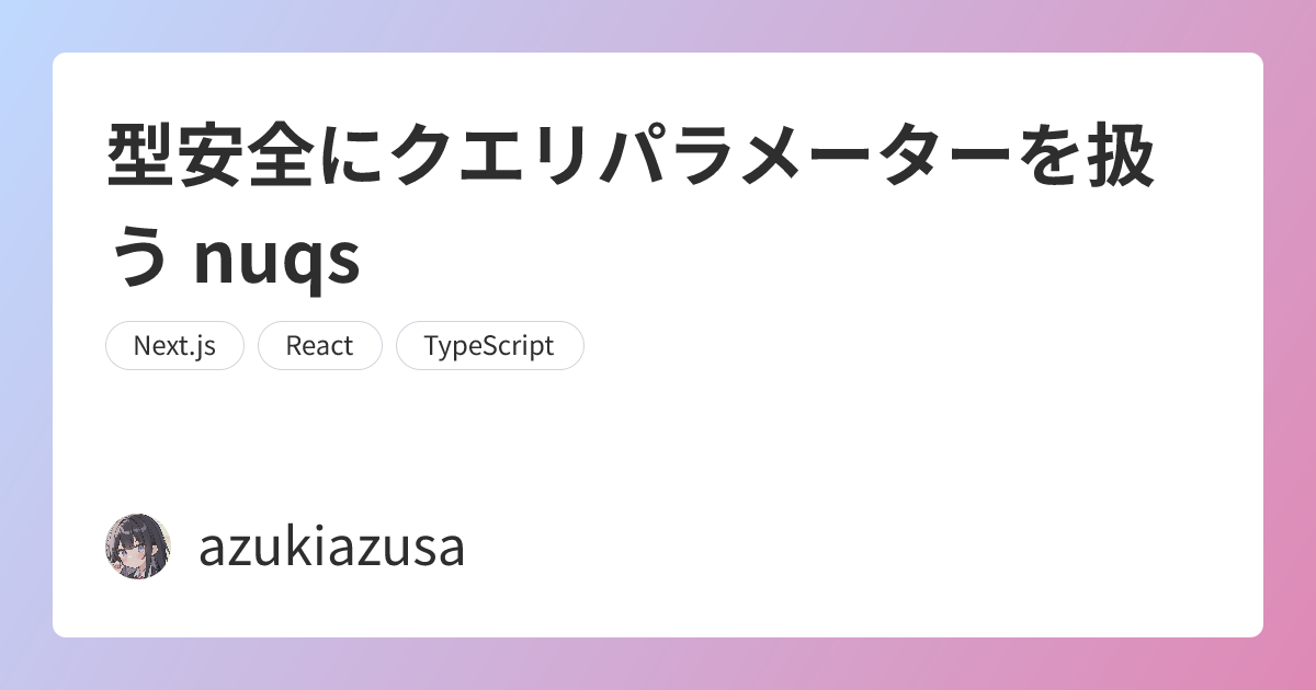 この記事では Next.js で nuqs を使用してクエリパラメーターを型安全に扱う方法について解説します。