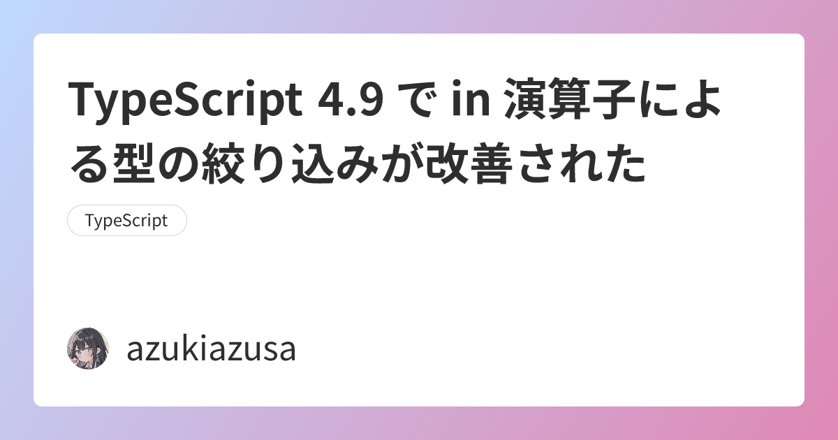 TypeScript 4.9 で in 演算子による型の絞り込みが改善された