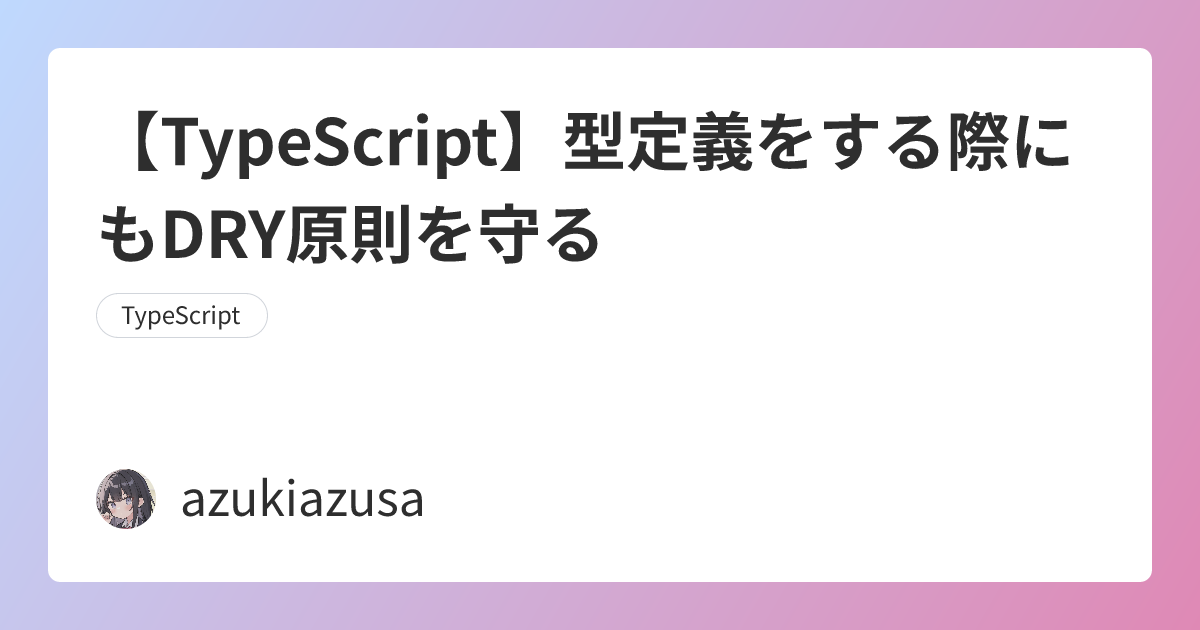 DRY原則は非常に有名な原則ですし、普段から特に考えずとも自然と重複をさけるようなコードを書いている方も多いことでしょう。 とはいえ、TypeScriptにおいて`interface`や`type`などを用いて型定義を行う際に重複した型定義を行ってしまうことはないでしょうか? TypeScriptには型定義をする際に重複を抑える手段は確かに存在します。そのようないくつかの方法を紹介します。