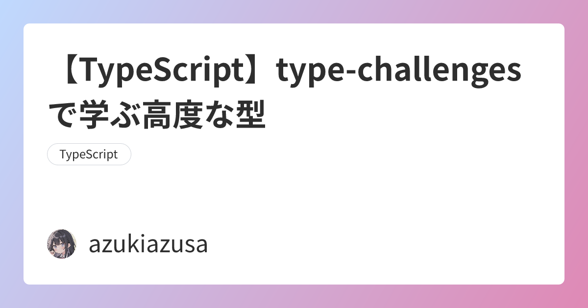 type-challengesを知っていますか? これは TypeScript の型についての問題集で、問題文の条件を満たす独自のユーティリティ型を作るチャレンジです。いわゆる「型パズル」ってやつですね。 問題の回答はPlayground上で行えるので実際に手を動かしながら問題を解くことができます。型パズルを通じてTypeScript の高度な型について学んでいきましょう。