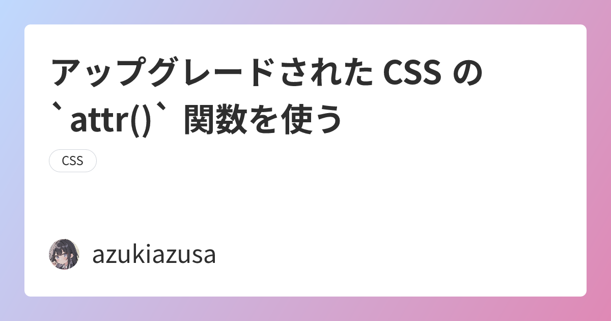 `attr()` 関数は HTML の属性を読み取り、それを CSS で利用できるようにする関数です。従来までは `content` プロパティのみで使用できましたが、CSS Values and Units Module Level 5 ではこの制限が見直され、`attr()` 関数がカスタムプロパティを含む任意の CSS プロパティで使用できるようになりました。
