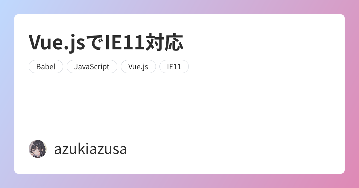 人生でときにはIE11に対応させなければいけない時があるでしょう。Vue.jsでIE11に対応しなけらばいけなくなったときに読むものを記載しておきます。