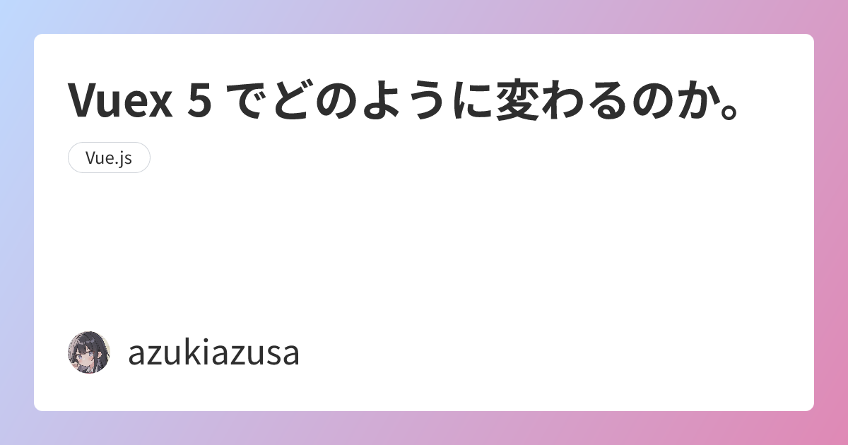 Vuex 5 は Vue 3 において Composition API による Reactivity API が登場したことにより Reactivitty API によってどのように Vuex をどうさせるか再考されたバージョンとなっています。